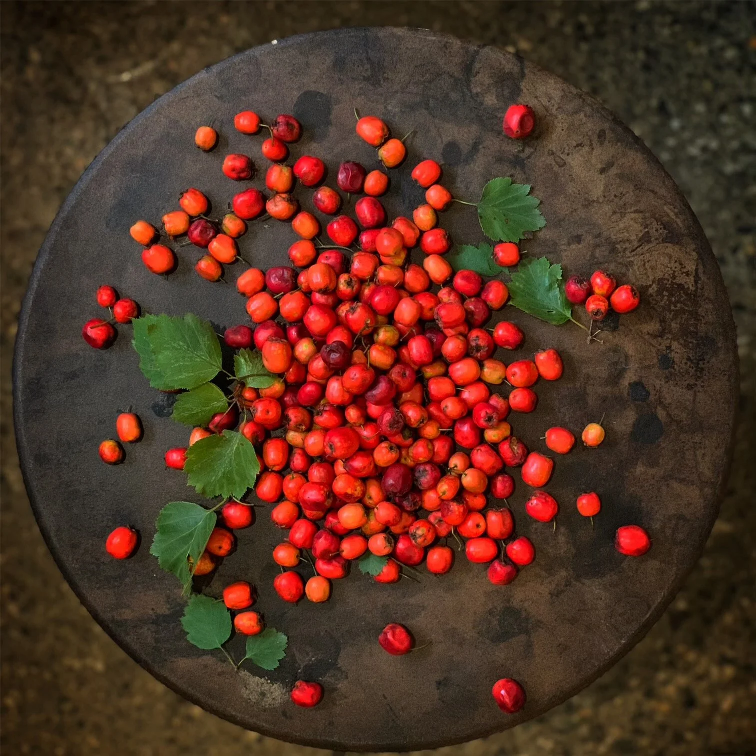 To harvest your own hoard of this thorny cousin of the apple, look in late August on the borders of fields and forests as well as near old farmhouses for trees glowing with these fleeting rubies. We harvest ours in the wild, under Vermont’s late summer sun. Leaves and flowers, however, we pick in May. To supplement our stock, we source from Zack Woods Herb Farm, in Hyde Park, VT, Wayside Botanicals in Ferndale WA, and Oshala Farm in Grant’s Pass, OR.*
